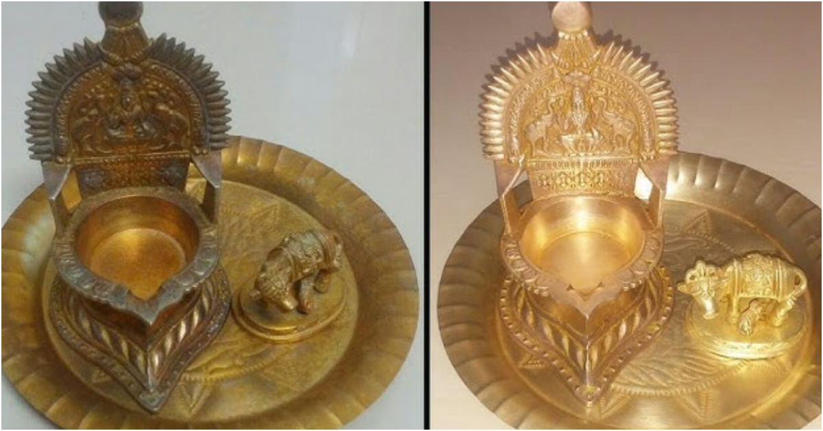 വീട്ടിലെ വിളക്കുകൾ, ചെമ്പ് പാത്രങ്ങൾ എന്നിവയെല്ലാം ക്ലാവ്, എണ്ണ എന്നിവ പറ്റിപ്പിടിച്ചു കഴിഞ്ഞാൽ വൃത്തിയാക്കി എടുക്കുക എന്നത് ഒരു പണിപ്പെട്ട കാര്യമാണ്. അത്തരം സാഹചര്യങ്ങളിൽ ചെയ്തെടുക്കാവുന്ന ഒരു ടിപ്പാണ് ആദ്യമായി വിശദമാക്കുന്നത്. എണ്ണ കെട്ടിക്കിടന്ന നിലവിളക്കാണ് ക്ലീൻ ചെയ്യാനായി എടുക്കുന്നത് എങ്കിൽ ആദ്യം തന്നെ അതിലെ തിരിയും മറ്റും എടുത്തു മാറ്റുക. എണ്ണ ഒന്ന് തുടച്ചു കളഞ്ഞ ശേഷം അതിലേക്ക് അല്പം ടൂത്ത് പേസ്റ്റ് ഇട്ടു കൊടുക്കുക.