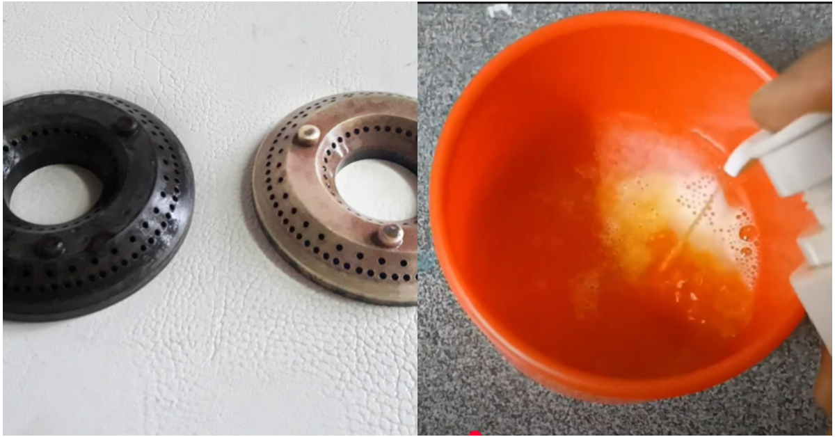 ഒരു പാത്രത്തിലേക്ക് ഒരു ടേബിൾ സ്പൂൺ അളവിൽ ബേക്കിംഗ് സോഡ ഒരു സ്പൂൺ അളവിൽ വിനാഗിരി എന്നിവ ചേർത്ത് നല്ലതുപോലെ മിക്സ് ചെയ്ത് എടുക്കുക. ബേക്കിംഗ് സോഡയിലേക്ക് വിനാഗിരി ഒഴിക്കുമ്പോൾ അതിൽനിന്നും ചെറിയ രീതിയിൽ ബബിൾസ് രൂപപ്പെടുന്നതായി കാണാൻ സാധിക്കും. ഈയൊരു കൂട്ടിലേക്ക് അല്പം വെള്ളം കൂടി ചേർത്ത് നല്ലതുപോലെ മിക്സ് ചെയ്ത ശേഷം ഏതെങ്കിലും ഒരു ഡിഷ് വാഷ് ലിക്വിഡ് കൂടി അല്പം ഒഴിച്ചു കൊടുക്കുക. തയ്യാറാക്കിവെച്ച ആ കൂട്ടിലേക്ക് ക്ലീൻ ചെയ്യാനുള്ള ബർണർ ഇട്ട് കുറച്ചുനേരം റസ്റ്റ് ചെയ്യാനായി വയ്ക്കുക.
